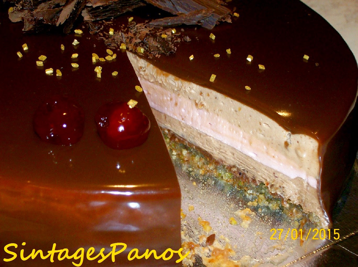 Τέλος, επικάλυψη με γλάσο καραμέλας, (περίσσευμα) αναμειγμένο με μαύρη σοκολάτα υγείας.